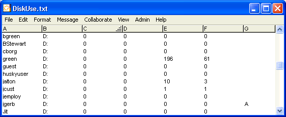 •       To find users who have the subadministrator privilege selected on their User Information forms, view the Disk Usage report (double-click Reports, then Statistics Folder, and choose DISKUSE.TXT). The last field describing a subadministrator contains an “A” (this report will only show those users who were specifically granted the subadministrator privilege on their User Information form, not those who are granted this privilege through group membership).