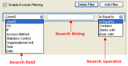 The term you enter must match a member of that field in the user statistics.