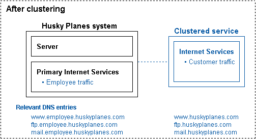 In this scenario, we decided to put all SMTP traffic on a cluster. This way, all other services (for example, HTTP, FTP, and so on) can run more efficiently on our primary Internet Services machine.