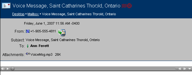 Although you can log into your Mailbox and retrieve your message using your phone, the FirstClass client, or a web browser, Voice Services is only used when logging in using a phone.