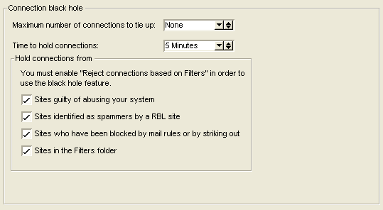 Filtering unwanted IP addresses and domain names is one of the most important steps you can take to fight spam and abuse. You do this by using and creating filter documents in the Filters folder, located inside the Internet Services folder on the administrator’s Desktop. If you wish to use filter documents to block addresses, you must enable "Reject connections based on Filters" on the Connections tab of the Basic Internet Setup form.
