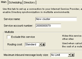 • typed the gateway name (C Dir Services) at "Service account" on the Service tab.